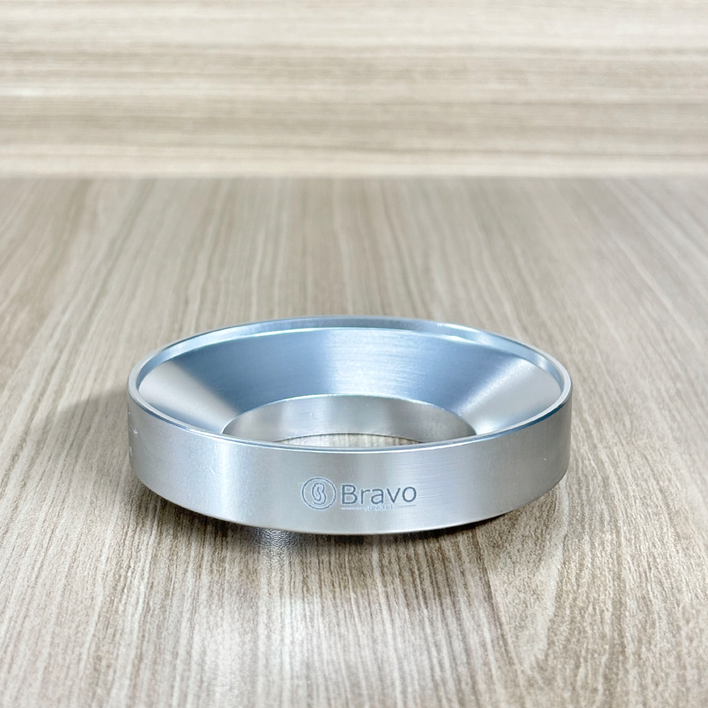 O Funil Bravo guia o pó de café direto para o porta-filtro, eliminando o desperdício e mantendo a bancada limpa. Um acessório simples, mas indispensável, para quem busca consistência e praticidade no preparo.