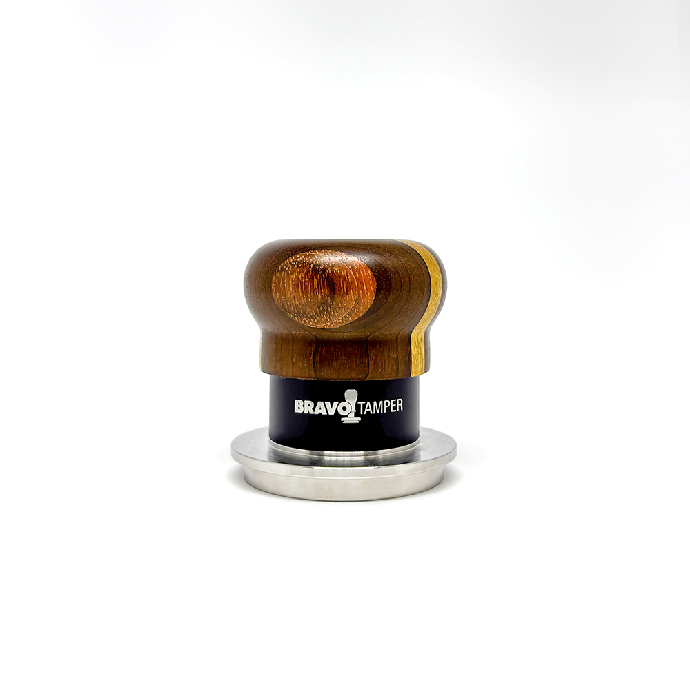 Mini Tamper Bravo com Punho de Madeira Listrada Escura e Saia Preta