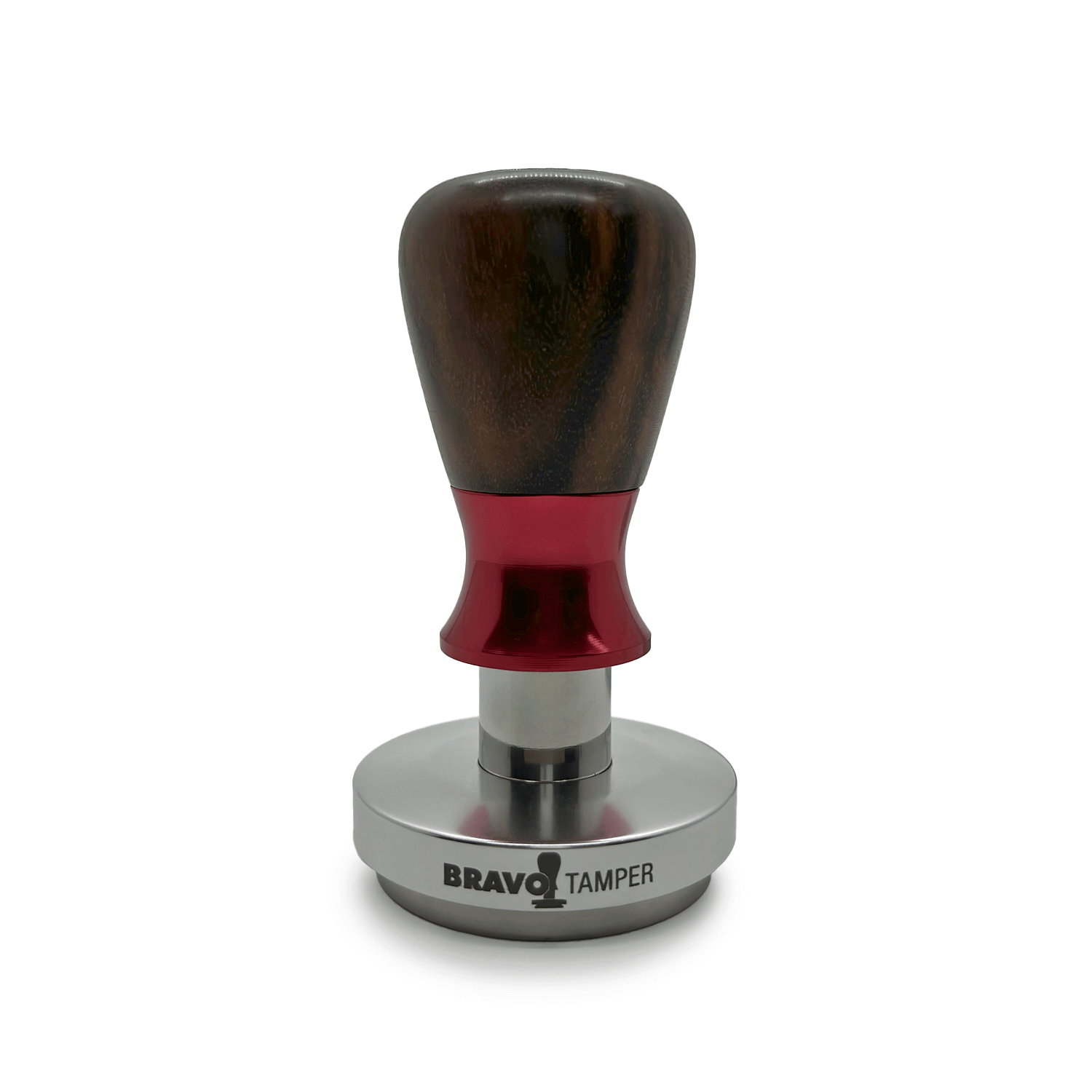 Tamper Bravo de Madeira Angico Preto | Punho Vermelho | Base Prata