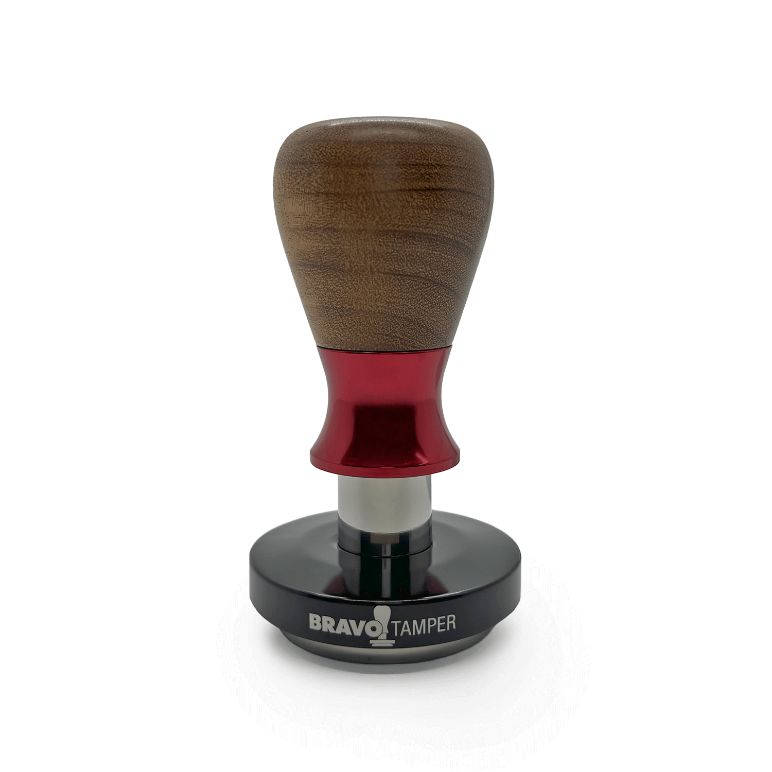 Tamper Bravo de Madeira Bálsamo | Punho Vermelho | Base Preto Brilho