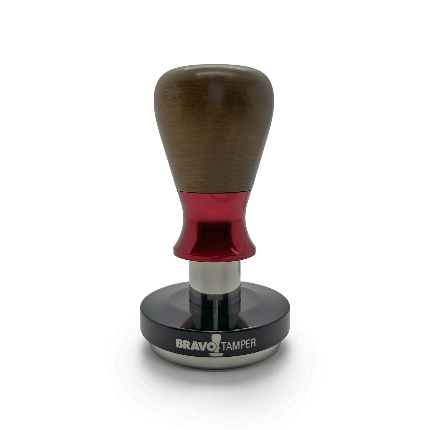Tamper Bravo de Madeira Imbuia | Punho Vermelho | Base Preto Brilho
