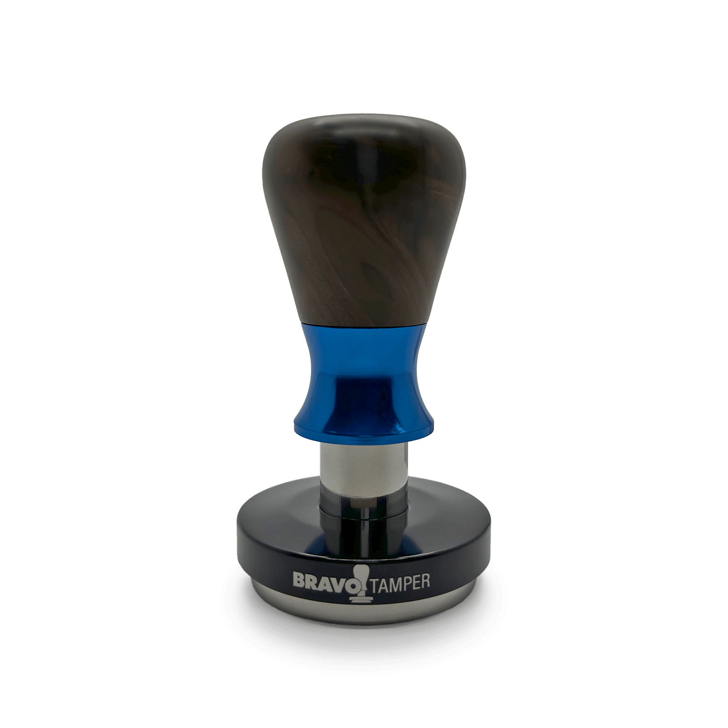 Tamper Bravo de Madeira Ipê | Punho Azul | Base Preto Brilho