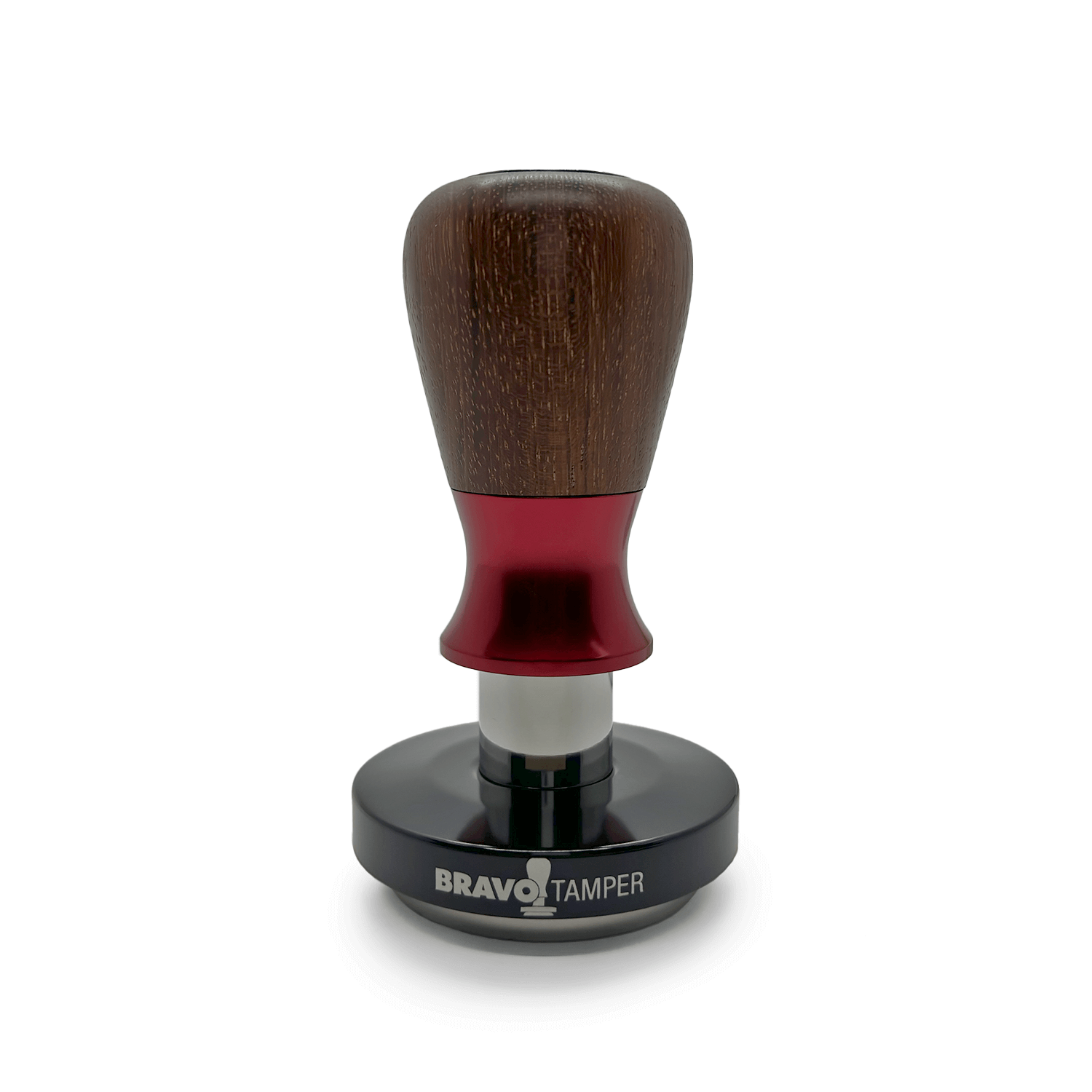 Tamper Bravo de Madeira Maracatiara | Punho Vermelho | Base Preto Brilho